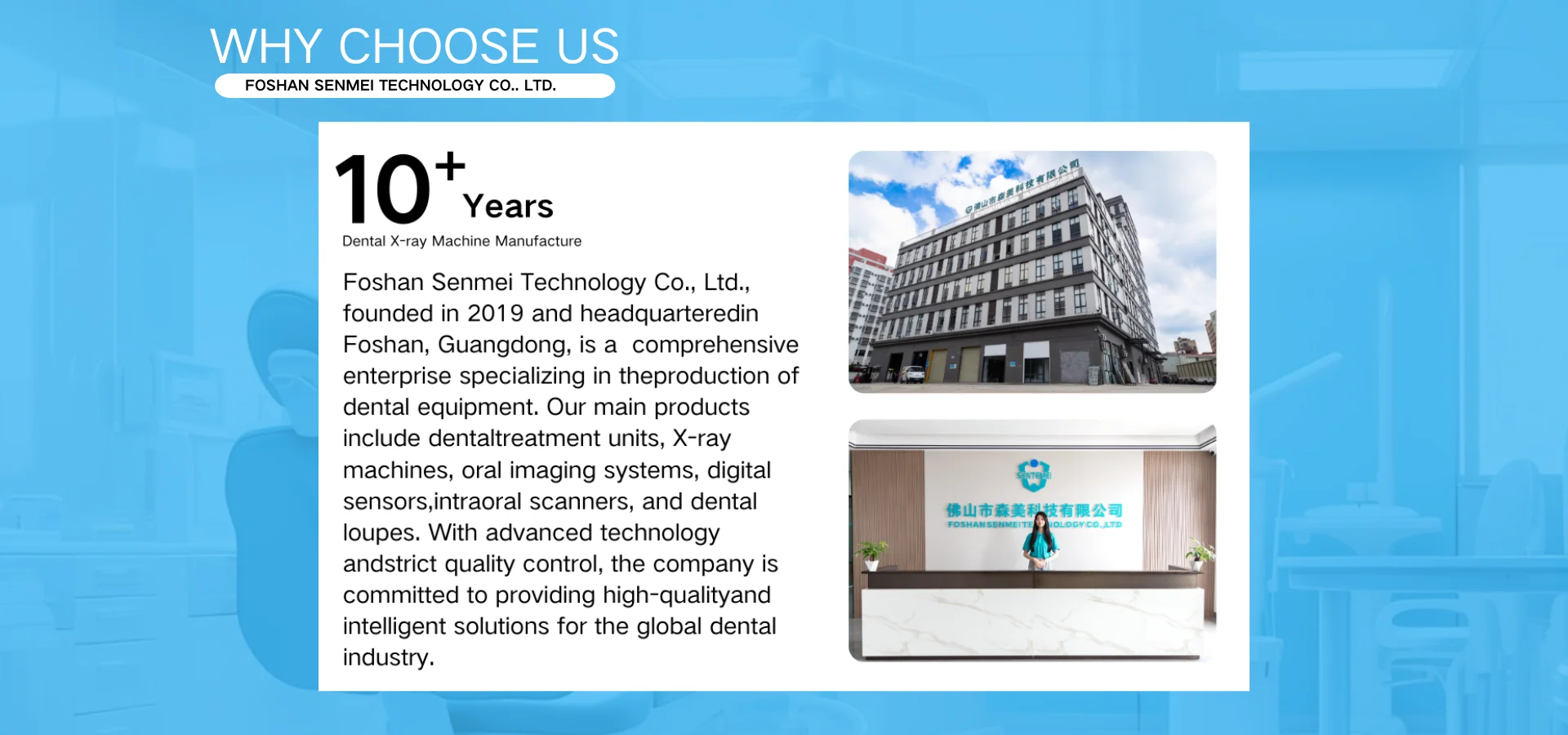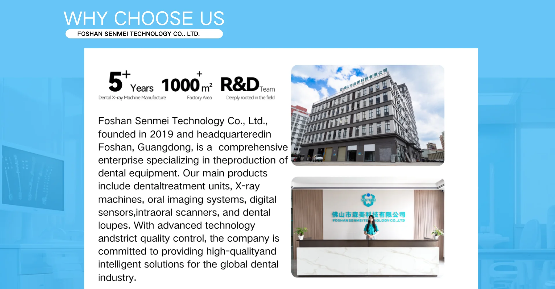Productos principales:Máquina portátil de rayos X, silla dental, lupas dentales, piezas de mano de alta velocidad, máquinas pulidoras